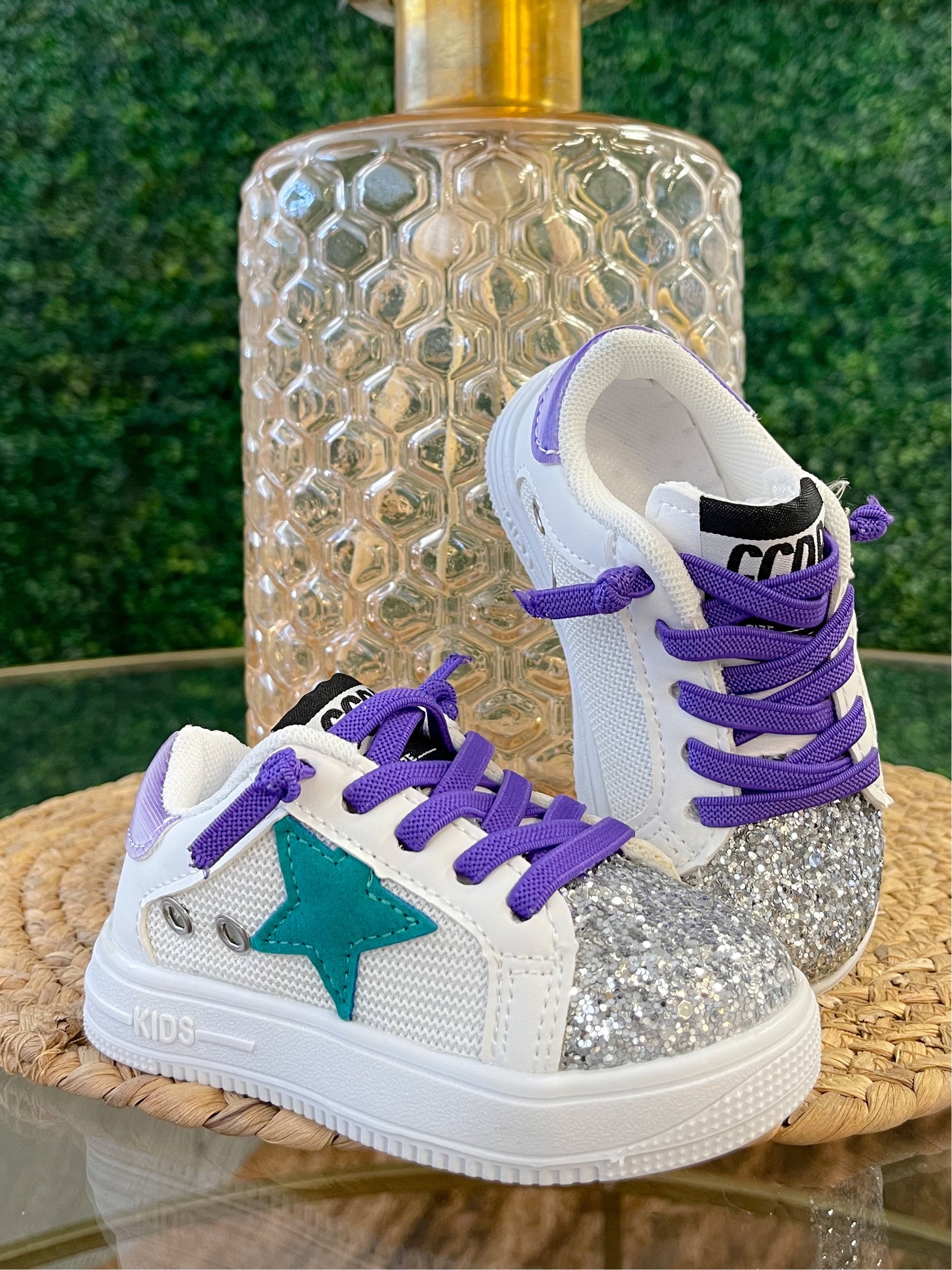 STAR SNEAKERS - SILVER/TURQUOISE W/PURPLE LACES